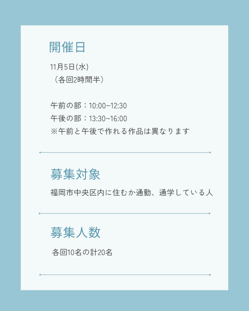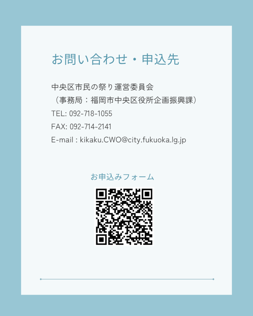 福岡市中央区にお住いの方や、通勤・通学されている方を対象としたイベントになります。